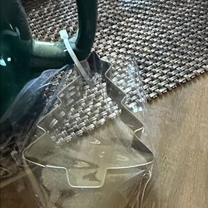 Festive green mug with 'Christmas Cheer' text. Includes a tree shaped cookie cutter.