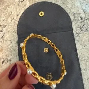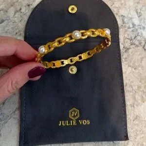 Julie Vos Palermo Pearl Bangle in 24k gold plate with imported glass pearls