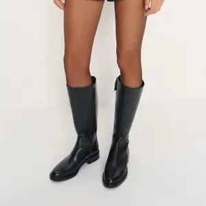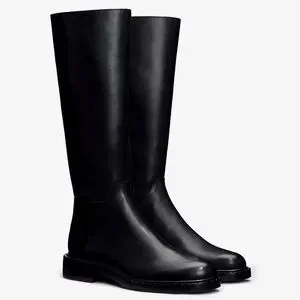 Sleek black leather boots. Knee-high design. Sturdy sole for durability. WORN ONCE