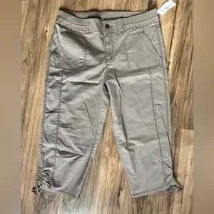 NWT khaki capri pants with pockets and adjustable leg length with tie. Size 10