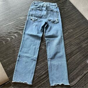 Good American Good Legs Straight High Rise Jeans in Distressed Blue, Size 4/27