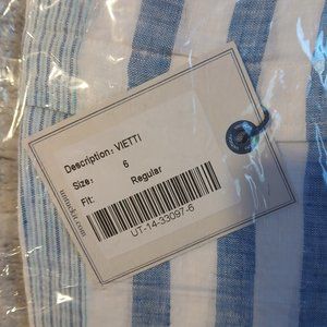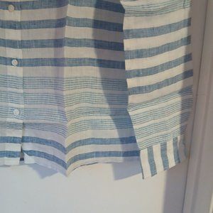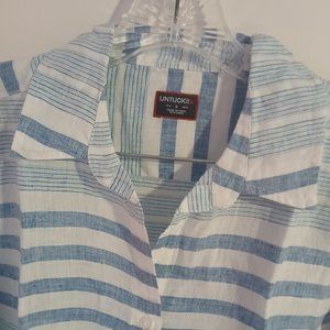 Untuckit Vietti Women's Long sleeve Linen Button Up Blue White Stripe SZ…