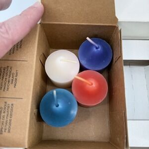 • (10) assorted votive candles in various colors and scents (2 candles were removed)