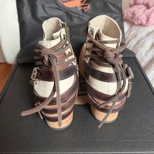 Stylish boots with unique cutouts. Ivory leather with dark brown details. Ideal for fashion-forward looks. Only ever tried on. Brand new!