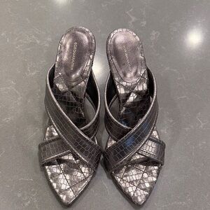 BCBGMaxAzria Silver Croc-Embossed Heels