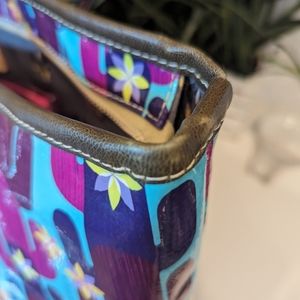 Consuela zipper tote in good condition. Minimal signs of wear. Approximately: The base is 17" across, top is 22" across, height is 15", depth is 8", and the handle drop is 11”. Reposhing in same condition as purchased as never used.