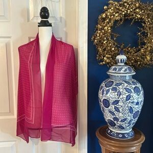New Effy Hematian Bright Pink Jaguars & Letter H Polyester Scarf 19.5” x 59”