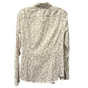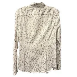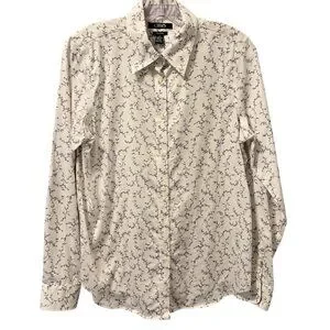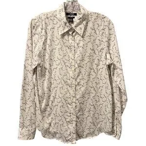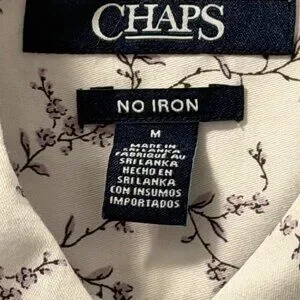 Chaps Womens No Iron Button-Up Shirt Sz M White Floral 100% Cotton Long Sleeve