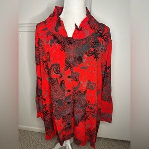 Ali Miles 3/4 Sleeve Paisley Print Button Front Tunic Top size 2X New with tag