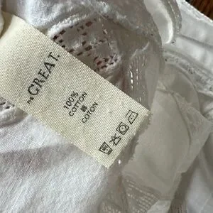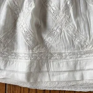 Ivory blouse with intricate texture. Features gathered neckline.