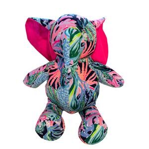 Adorable and authentic Lilly Pulitzer stuffed elephant plush in a vibrant multicolor Lilly signature print. This is the large 16-inch version, which is harder to find and highly sought after for nursery décor, dorm rooms, and collectors of Lilly home items.