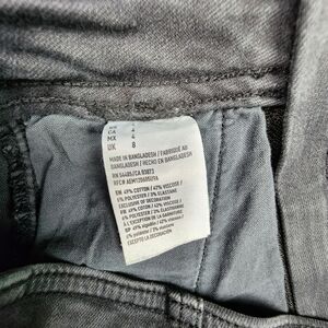 American Eagle black mini skirt in size 4. Zips all the way down the front. 49% cotton, 42% viscose, 4% polyester, 3% elastane. Approximate flat lay measurements are shown in the photos. There is some discoloration on the back, as well as general signs of light wear. Overall, good pre-loved condition.