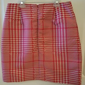 Elevate your wardrobe with this shimmery and classy pink and cream WHBM houndstooth skirt. High-waisted and nice pink liner.