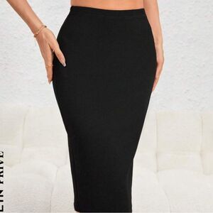 Sacks FiFth Ave 5/48 black stretch midi skirt with golden zipper