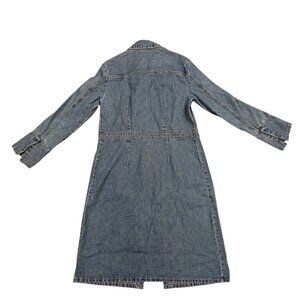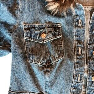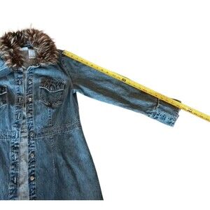 Vintage Denim Long Jacket Coat Removable Faux Fur Collar Faded Glory Size Medium