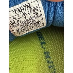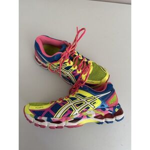 ASICS gel keyano 21 running shoes in a women's size 7, pink/blue/yellow in color and they are in good condition.