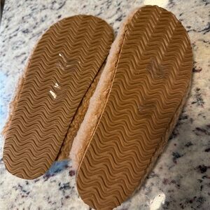 Experience ultimate comfort with these cozy tan slippers. Perfect for lounging at home. Never worn. Tried on and wasn’t for me.