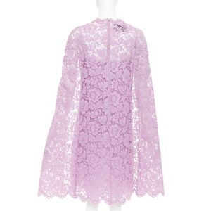 VALENTINO purple floral lace cape sleeve silk lined mini dress IT40 S