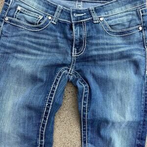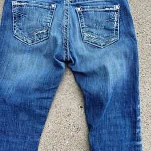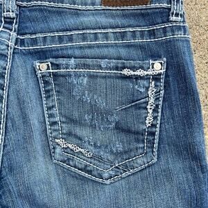 BKE denim SABRINA, Stretch women's size 28 capri length (23”) jeans. Thick stitching, slightly distressed back pockets. Cotton, polyester elastine blend fabric.