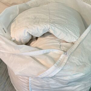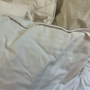 Thick fluffy Down comforter. Guc with a minor stain close to corner. Material tag removed so I can’t remember if it’s down alternative or down but it is Very fluffy!