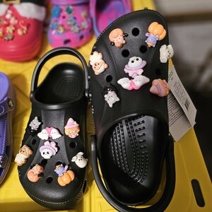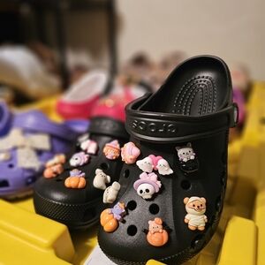 🎃NEW! Black Baya Clogs Fully Customized with Exclusive Handmade Charms👻