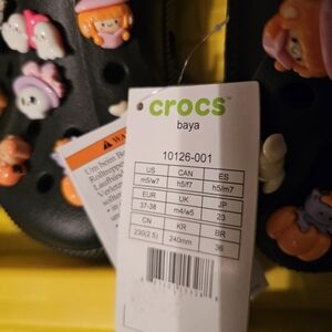 You're looking at a brand new pair of customized Black Baya Crocs—the hottest elevated style built on a durable, robust platform sole.