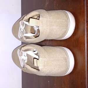 These awesome Amali canvas sneakers / tennis shoes are comfortable and durable. Size 12. Featuring a cream-colored canvas body material and trendy, thick white wall soles like the popular brand Vans. In good, gently-used condition. #FunInTheSun