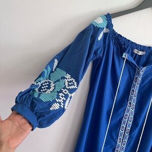 Misslook Blue Embroidery Aztec Long Cover Up