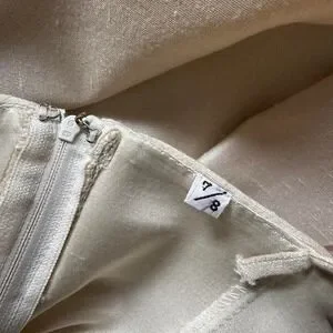 cream silk, pleated detail, vintage-inspired, minimalist, bodycon, square neckline, raw silk texture, back zipper, mini length, lightweight