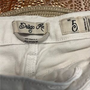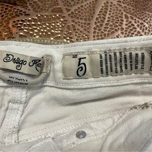 Stylish white shorts with vibrant floral embroidery and pearls. Features frayed hem and classic five-pocket design. Perfect for casual outings.
