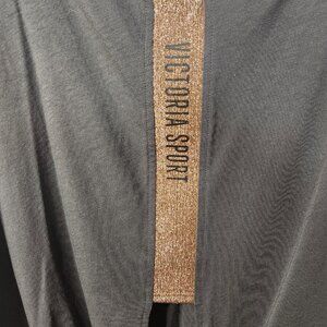 Victoria Sport Dark Gray Long-Sleeve Top Gold Brand Knotted Back Size Medium