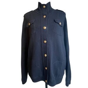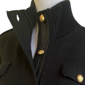 Lauren Ralph Lauren Black Military Cardigan Sweater Chunky Knit Classic Size 2X