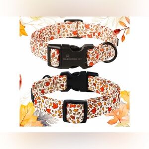 Stylish dog collar with autumn leaf design. Features vibrant orange and white colors. Durable and adjustable for a perfect fit.New in package. Size M.