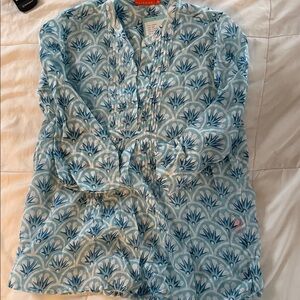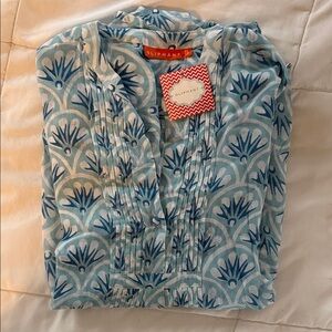 NWT Oliphant Teal and Navy Patterned Top