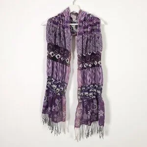 Purple Mixed Print Knit Fringe Bohemian Scarf