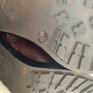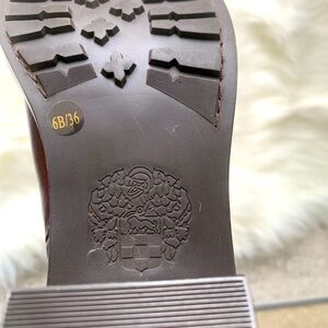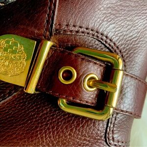 Elegant brown leather boots. Features gold buckle accents. Perfect for stylish outings.