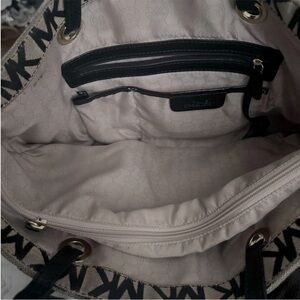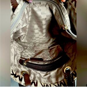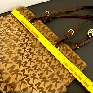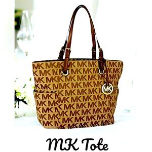 Stylish Michael Kors tote with signature MK pattern. Durable and spacious. Perfect for everyday use.