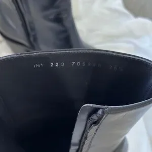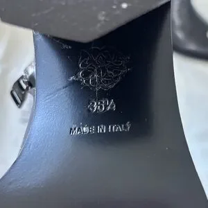 Elegant black heeled boots by Alexander McQueen. Features striking silver tips. Perfect for a chic look. Great for winter!!!!