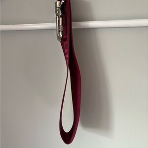 Elegant Lululemon keychain in maroon. Ideal for bags or keys.