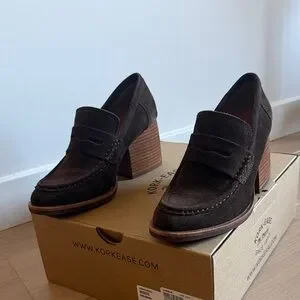Kork-Ease Dark Brown Suede Block Heel Loafers