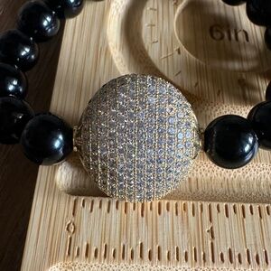 Polished 10mm Onyx w/ Gold Crystal Pave Center