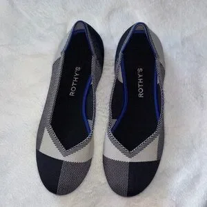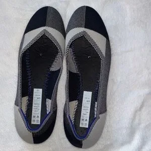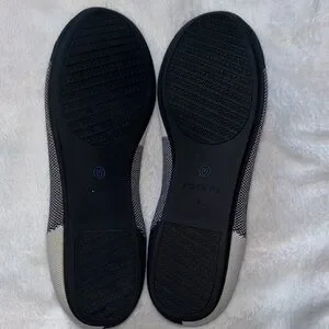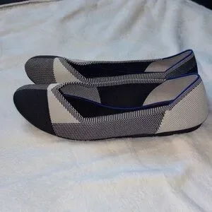 Rothy's Women's The Flat Round Cap Toe Shoe In A Black And Cream Pattern size 9