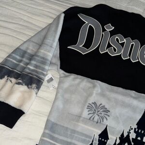 Embrace magic with this Disney crewneck. Features a bold castle design. Perfect blend of black and gray. Bottom part is fleece.