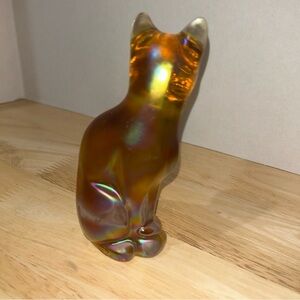 Vintage Fenton Stylized Iridescent Carnival Art Glass Sitting Cat 5 1/4” Figure