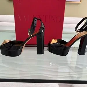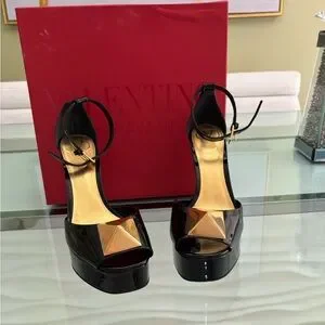 Authentic Valentino Women's One Stud Platform Heels in Black and Gold