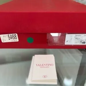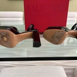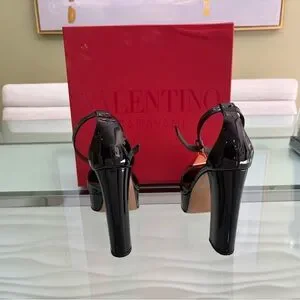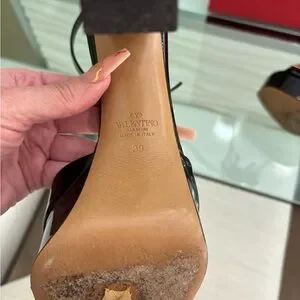 Chic Valentino heels with bold black and gold accents. Ideal for a sophisticated look.
