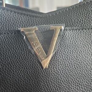 Joan Van Ness Chic Black Satchel with V Accent