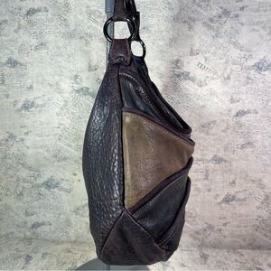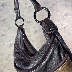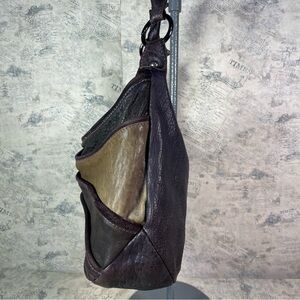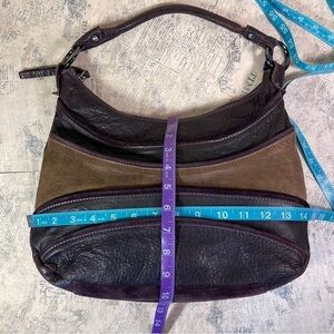 Innue leather purple and tan rustic hobo shoulder bag made in Italy