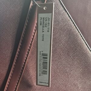 Joan Vass chic burgundy tote bag is a stylish addition to your wardrobe. Its deep color enhances any ensemble with elegance.
