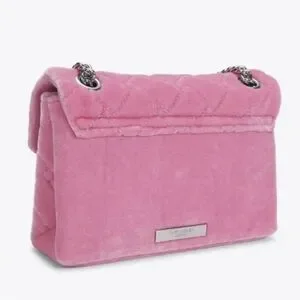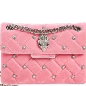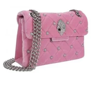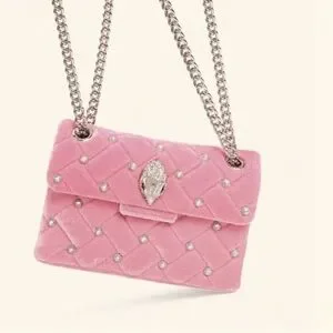 KURT GEIGER LONDON Mini Kensington Pink Quilted Velvet Crossbody With Gemstones